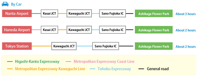 Please use the JR Ryomo Line "Ashikaga Flower Park" station.
