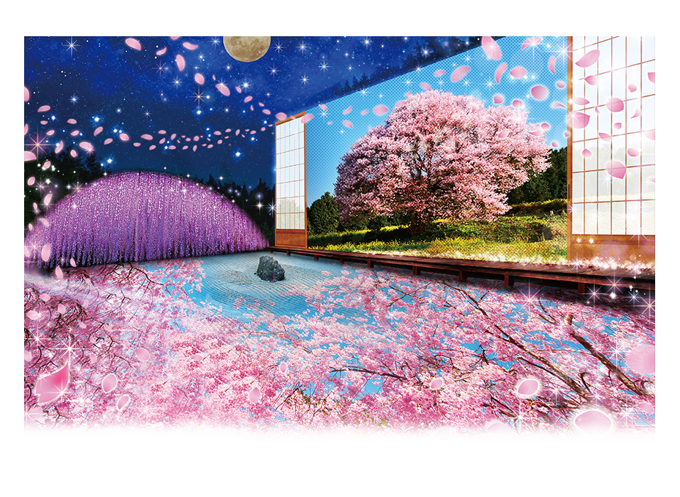 描绘出留在人们心中的古朴优雅的故乡情景。光之壁画上展现出恬静安祥的“日本的四季”。