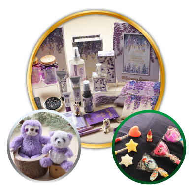 藤のハンドクリームなどのオリジナル商品やイルミネーション期間限定のお土産品など豊富に取り揃えています。