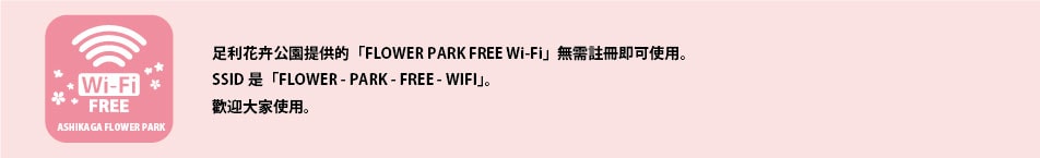 Public transport請在JR兩毛線「足利花卉公園」站下車。 ※回家時,預料足利花卉公園站會非常擁擠,所以請盡量提早去車站。此外,建議您事先在乘車時使用的IC卡中充入足夠的錢(充值)。 ◎搭乘東武伊勢崎線的遊客請在久喜站轉乘JR東北本線,然後從小山站搭乘兩毛線。 ◎從JR上野站也需要經由JR東北本線,在小山站轉乘。 Public transport從JR兩毛線「富田」站步行約13分鐘 Public transport搭乘東武伊勢崎線的遊客請在館林站換乘東武佐野線,然後從佐野站搭乘兩毛線。