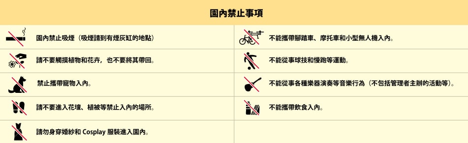 | (夜晚開園)門票 | 成年人 900日圓 - 1,900日圓 兒童 500日圓 - 1,000日圓 |