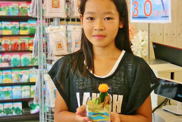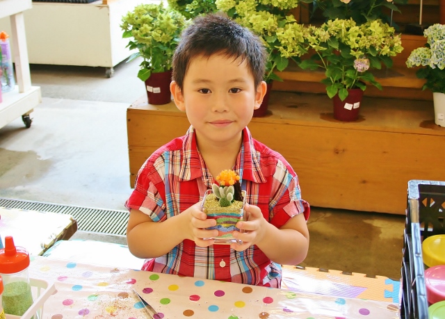 じょうぶなサボテンを色とりどりの砂(カラーサンド)で彩ります。