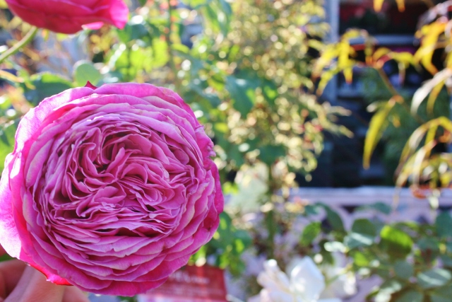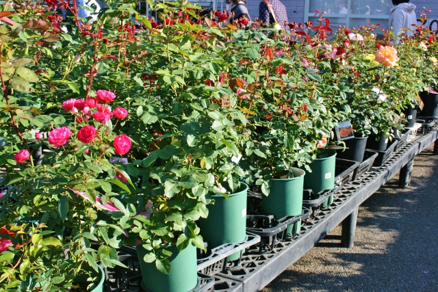 毎年恒例となりました秋のバラ開花株好評販売中です。