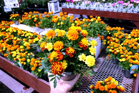おなじみマリーゴールド。大ボリュームいろいろ花色ミックスです。