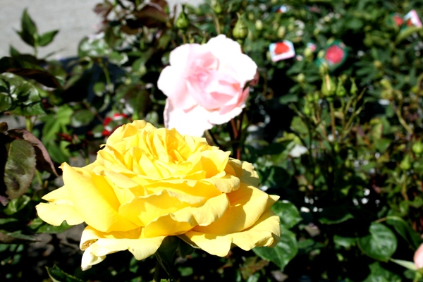 まさにいま園内と一緒に見頃を迎えておりますバラたち。