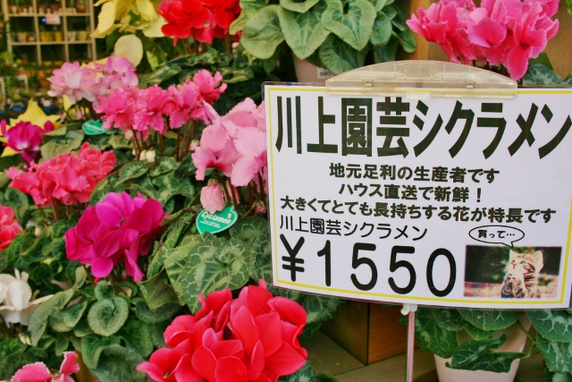 地元足利市の優良生産者「川上園芸」のシクラメン。