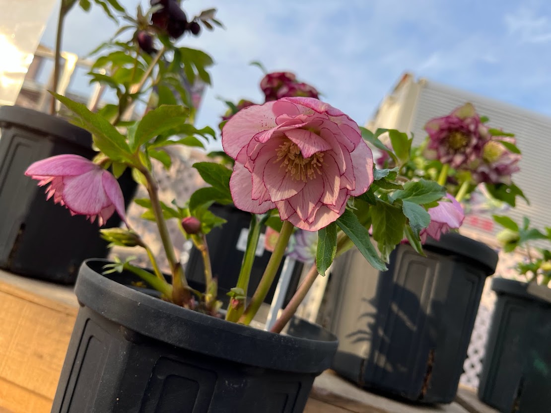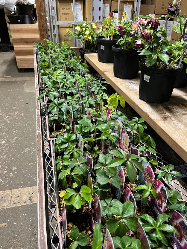 明日の即売会に並ぶ髙正園のクリスマスローズが入荷してまいりました!