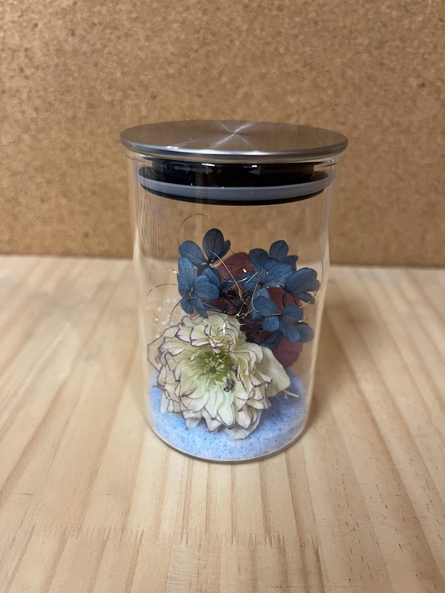 尚、当日は予めドライ化した花材を使って上記の様なボトルに入れてお持ち帰りできます!