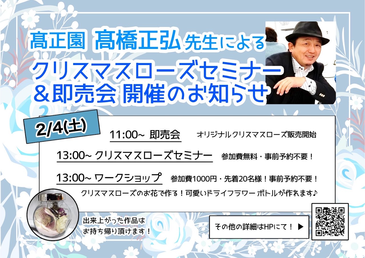 11:00~ 即売会 髙正園オリジナルクリスマスローズ販売開始