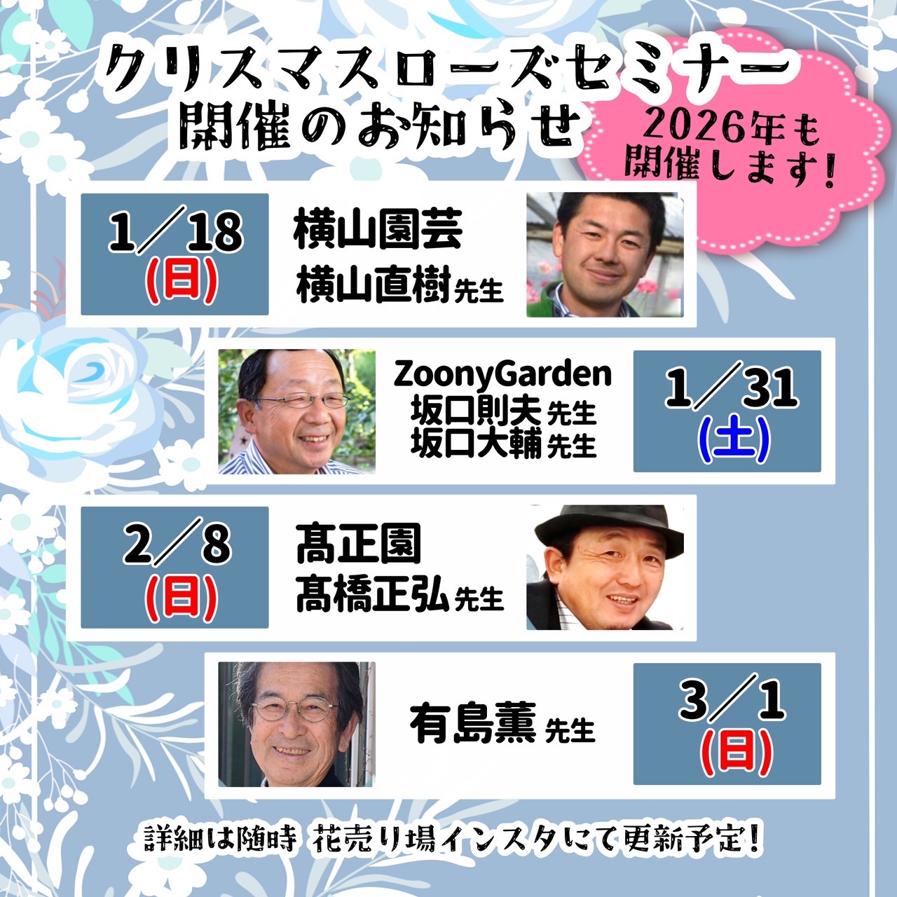 > 2026/01/081/18(日)横山園芸クリスマスローズセミナー&即売会の開催のお知らせ