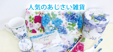エレガントなバラをモチーフとした雑貨を多数ご用意!当園オリジナルの藤雑貨や、爽やかなあじさい雑貨も販売中。ご自宅のインテリアが華やかに!