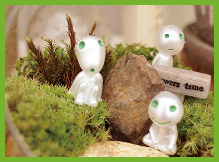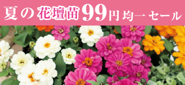 旬のお花や観葉植物など、お手頃価格で幅広い品揃えの ショップでは目移り必至。特に、見ているだけで癒され る「苔」が人気。夏の花壇を彩る花苗は、毎日\99 均一 セールを開催中。植物のある生活をはじめませんか?