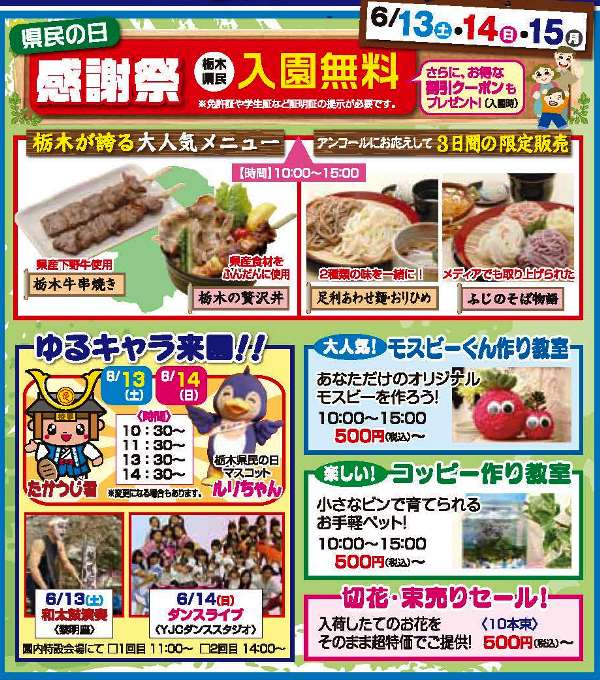 6/13(土).14(日).15(月)栃木県民の日“感謝祭”開催!!