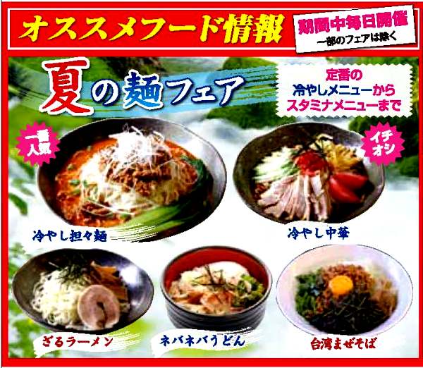 屋外フードコーナーでは夏にピッタリの冷やし麺や、まるごと果実のかき氷!!