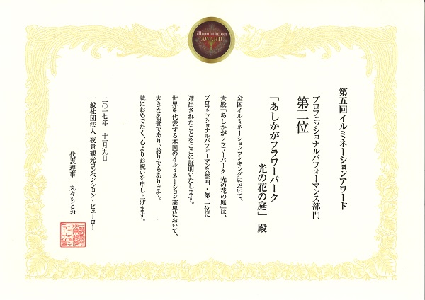また、本年は最先端技術を使い、世界レベルのパフォーマンスを誇る『イルミネーション演出』について順位化したプロフェッショナルパフォーマンス部門でも