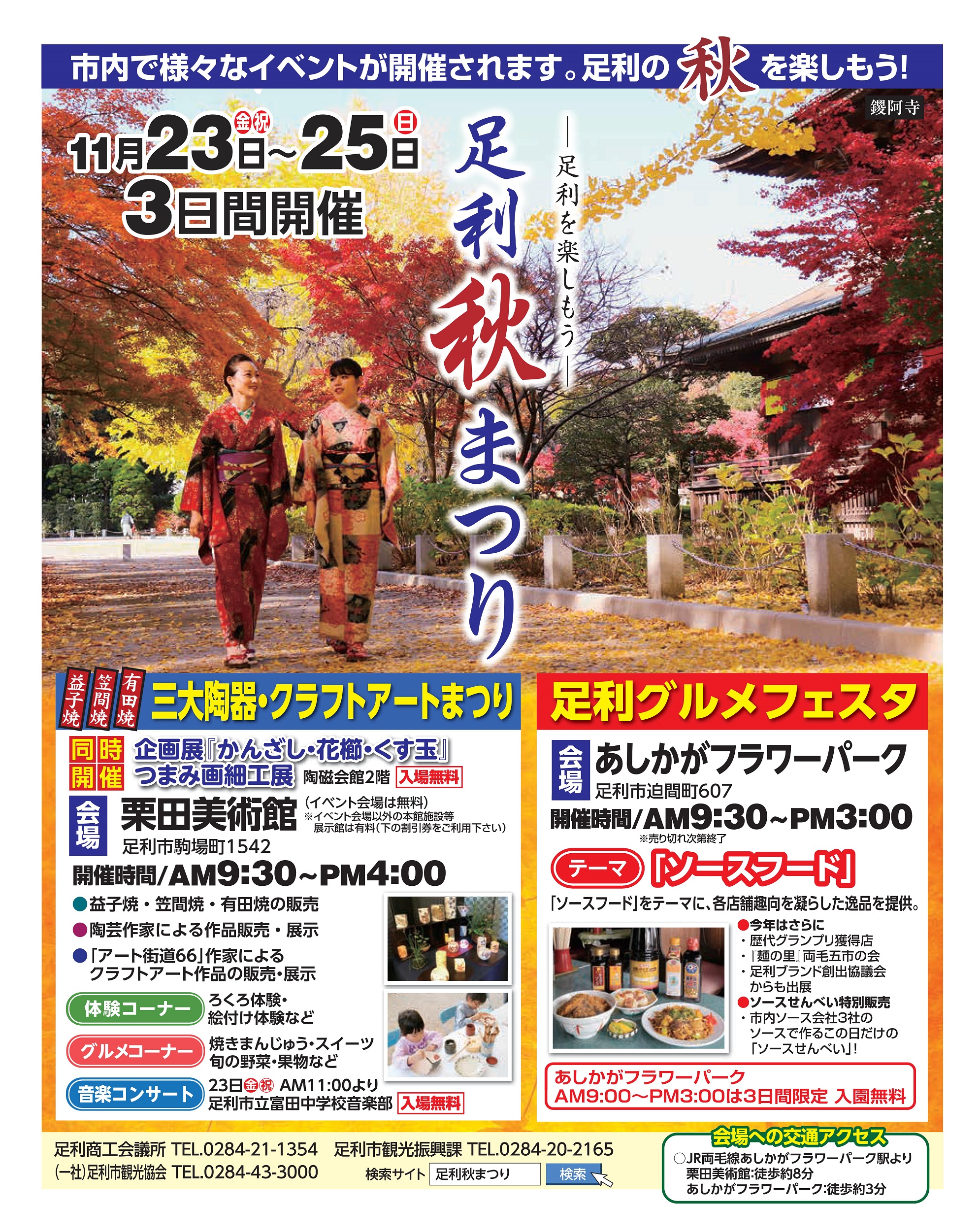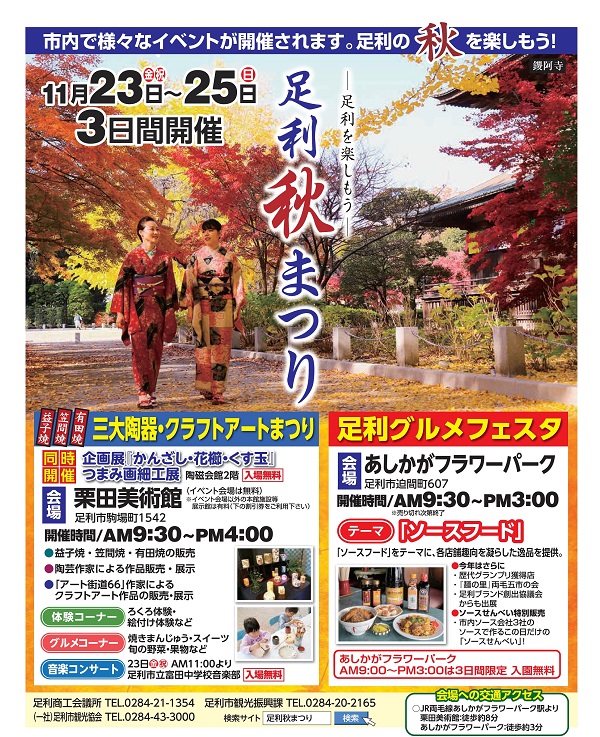 11/23(金)~11/25(日)の期間、足利秋まつりが開催されます。