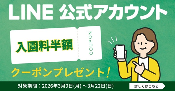 【入園料半額】メール会員に登録で割引券プレゼント!