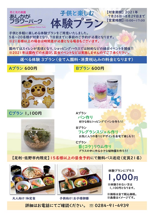 お子様と一緒に楽しめる体験プラン(予約制)をご用意しました。