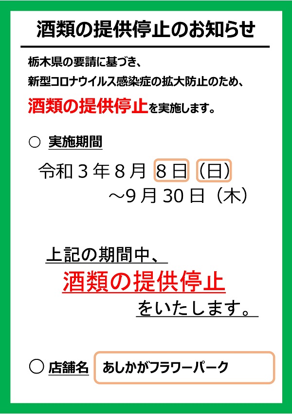 8/8(日)より酒類の提供停止をさせて頂きます