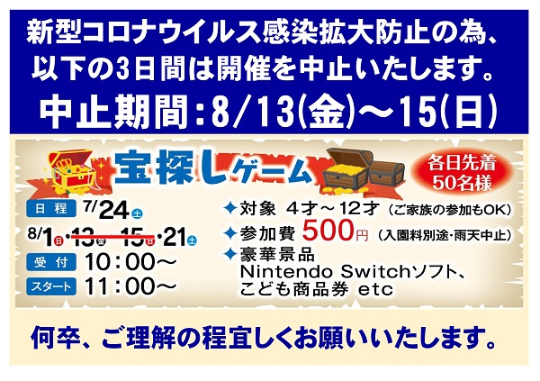 新型コロナウイルス感染拡大防止の為、以下の3日間は開催を中止いたします。