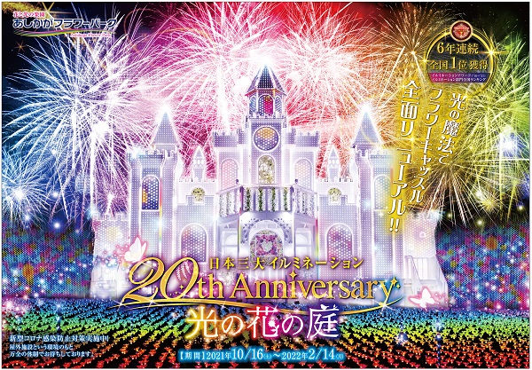 2021年10月16日(土)~2022年2月14日(月)イルミネーション『光の花の庭』期間中は「昼の部」と「夜の部」が入替制となります。