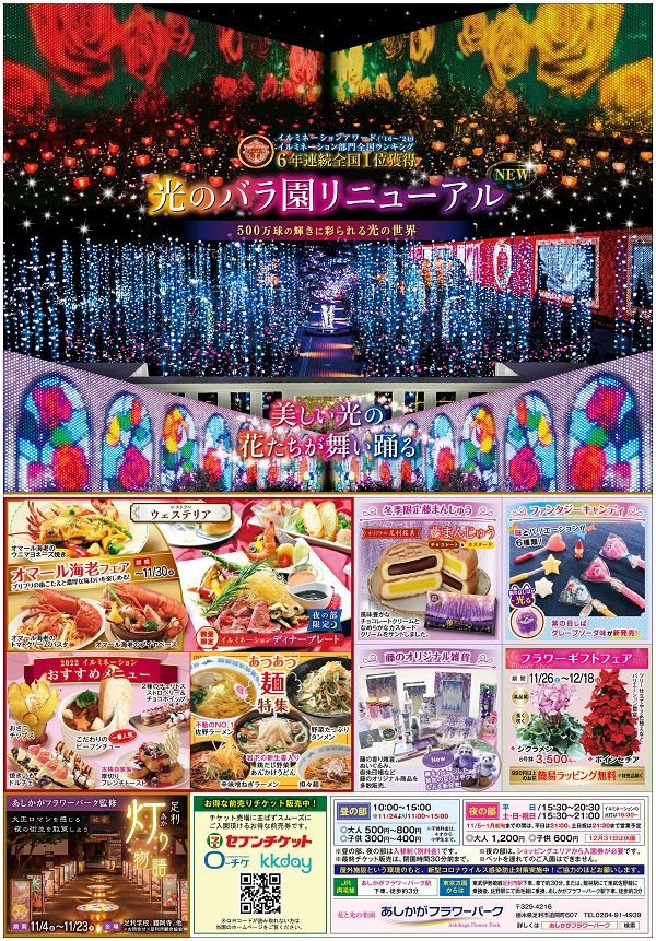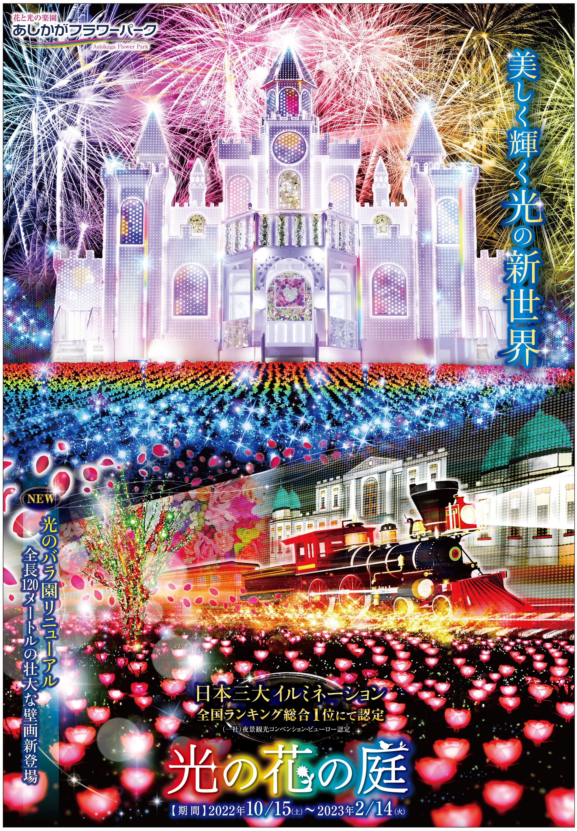 2022年10月15日(土)~2023年2月14日(火)イルミネーション『光の花の庭』期間中は「昼の部」と「夜の部」が入替制となります。