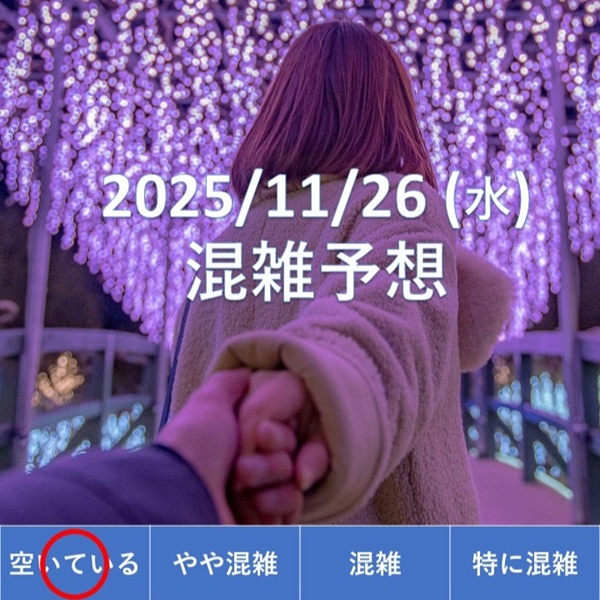 本日11/26(水)の夜の部イルミネーションは「空いている」と予想しております。