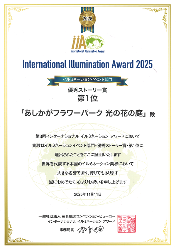 【日本一獲得!】第3回 International Illumination Award 最優秀賞受賞!