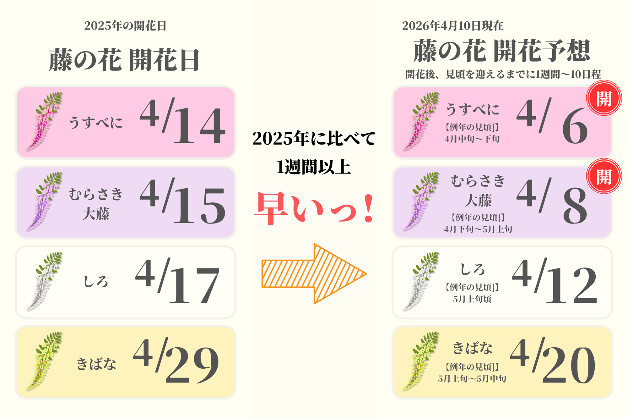 【開花予想】今年の藤は早めに見頃を迎えそうです!