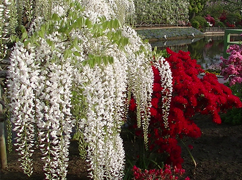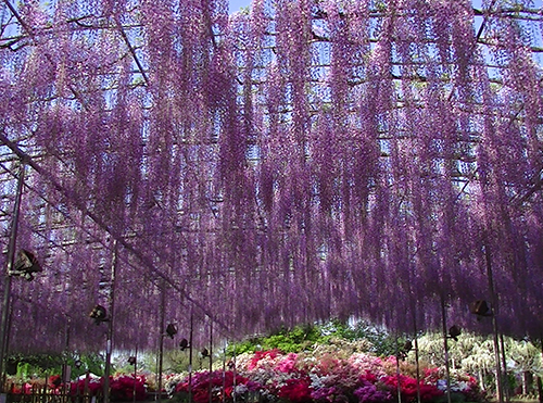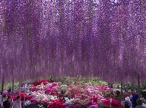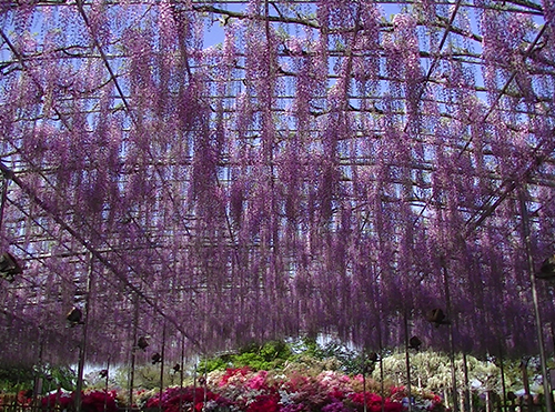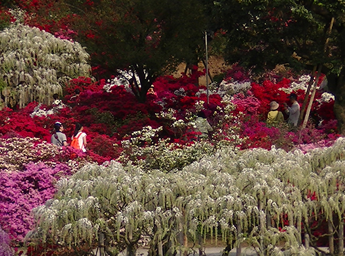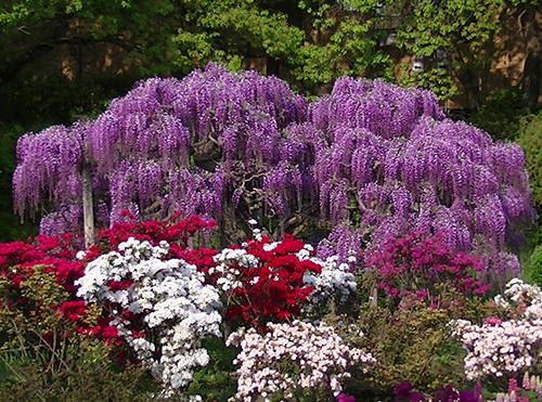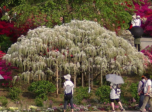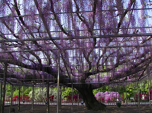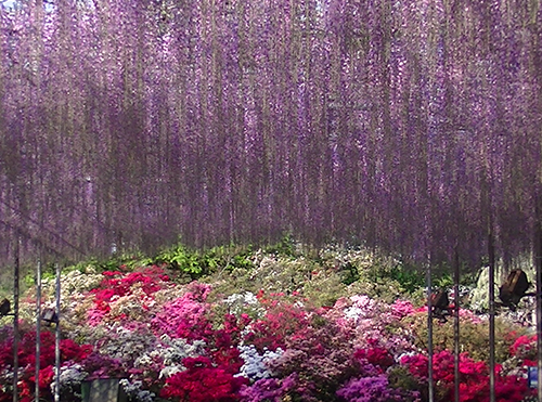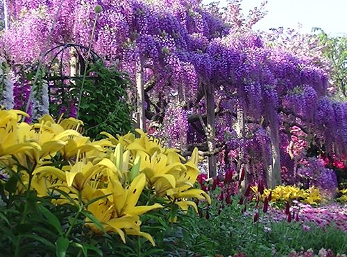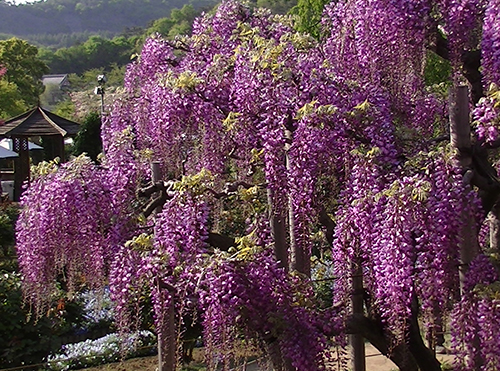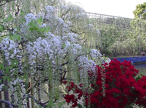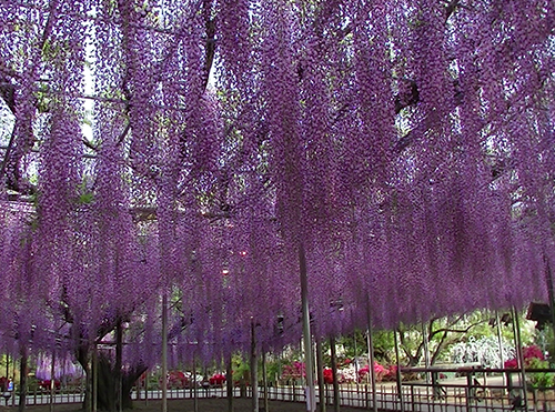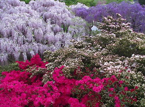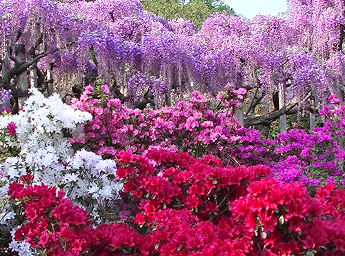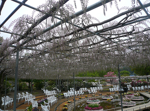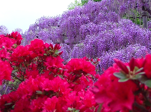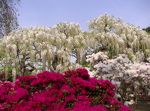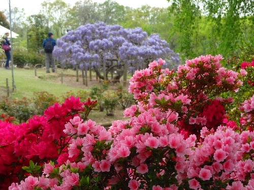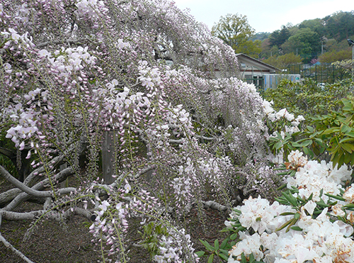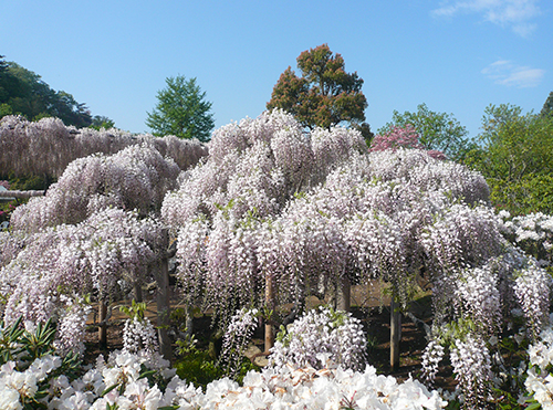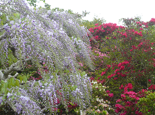 ツツジやシャクナゲと共に非常に美しい園内となり、藤の優しい香りに包まれています。