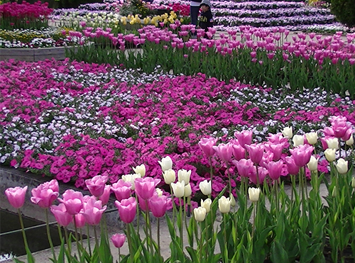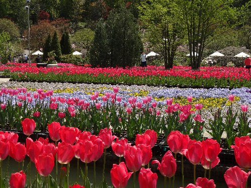 本日は冷たい雨となりましたが、チューリップなど春の花々が、よりいっそう鮮やかに園内を競い合っております。