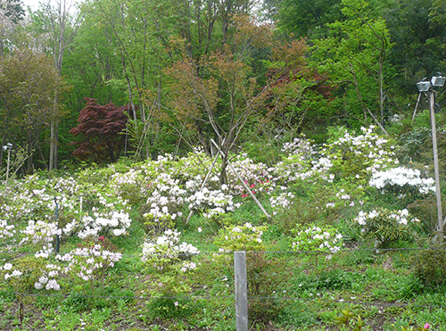 現在の園内は山際のクロフネツツジやシャクナゲがとても綺麗に咲いております。