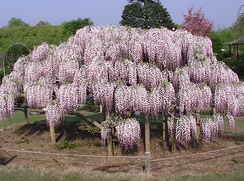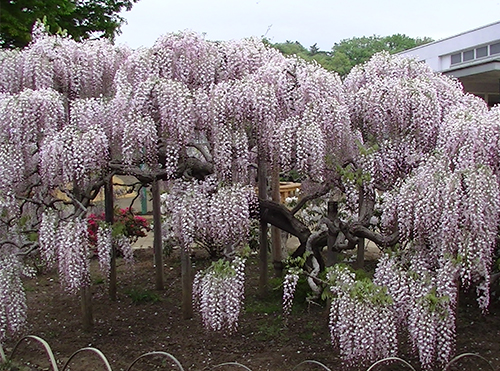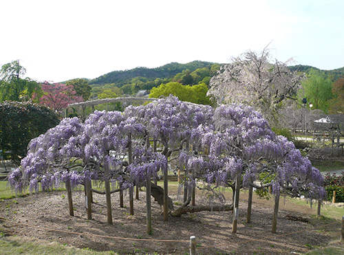 「さくら色の藤(うすべに藤)」や「庭木仕立てのむらさき藤」が徐々に見頃を迎え始めました。