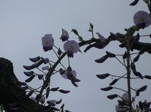 「さくら色の藤(うすべに藤)」や「庭木仕立てのむらさき藤」が徐々に開花してきました。