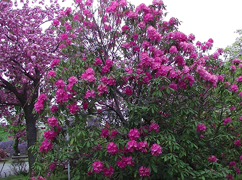 シャクナゲやツツジとともに、園内がさくら色の世界に包まれます。