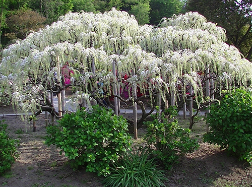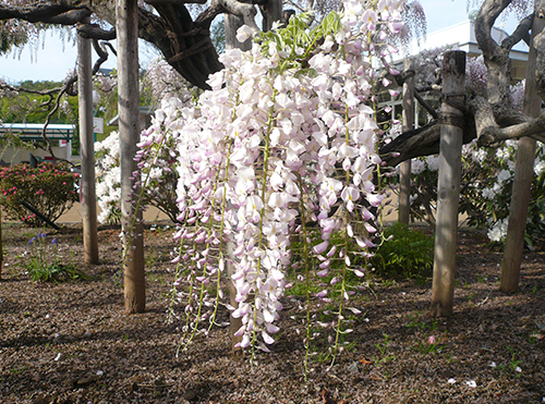 大藤は見頃!!庭木仕立ての白藤はもうまもなく見頃を迎えます!!
