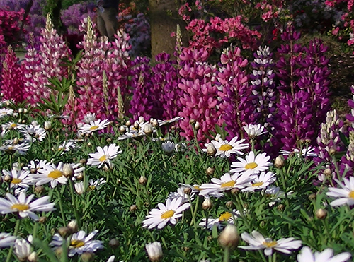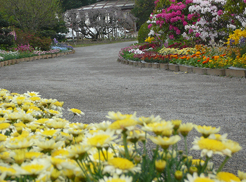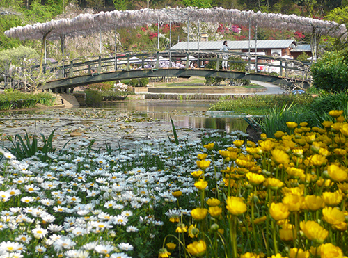 藤の花と共に見頃を迎える花々が華やかに園内を彩っています。