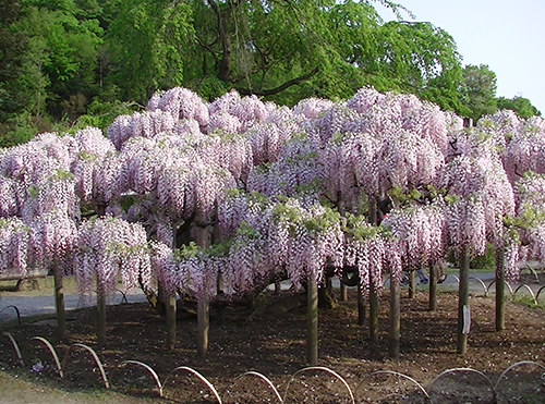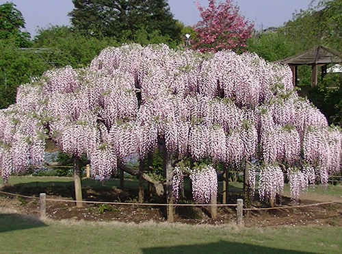 「さくら色の藤(うすべに藤)」は見頃を迎え、