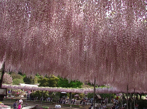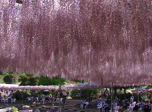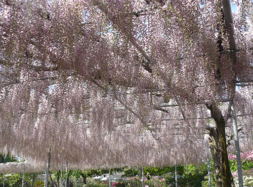 「ふじのはな物語」第一幕、さくら色の藤(うす紅藤)が見頃を迎えました。