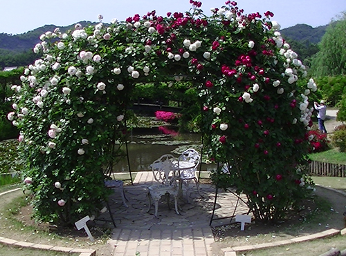 3種類のバラからなっており、ドームの中で休憩をすることもできます。