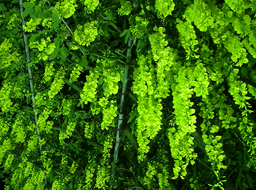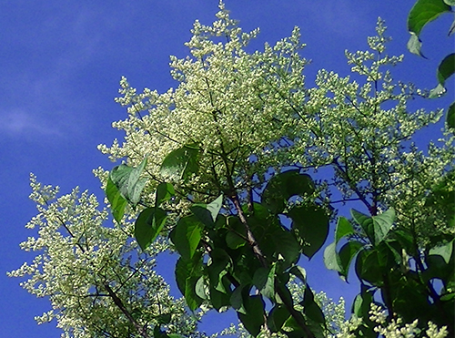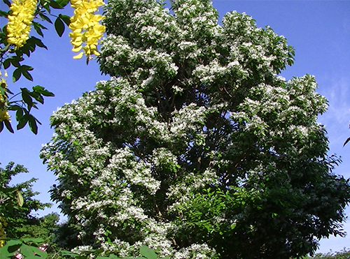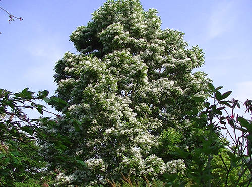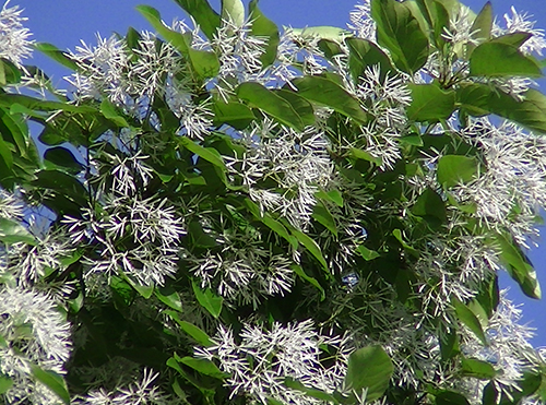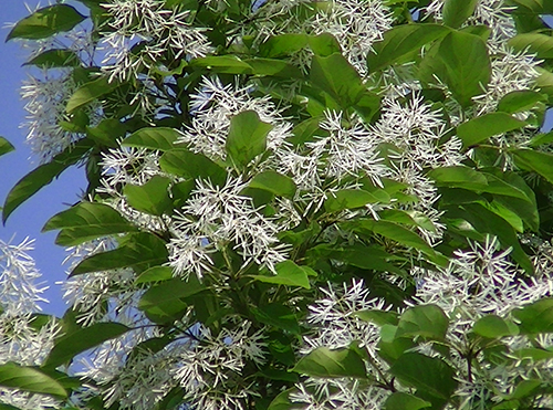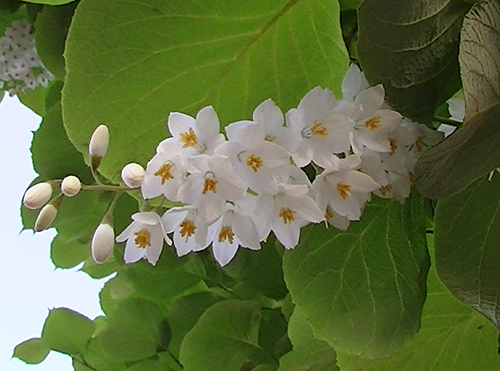 エゴノキ科エゴノキ属で白い花が群がって咲く様子を雲に見立てて「白雲木」と呼ばれ、花はエゴノキに良く似ていますがこちらは葉がかなり大きめです。種子からは油分が取れる事から、ろうそくなどがつくられております。