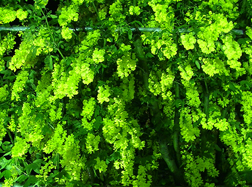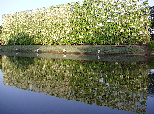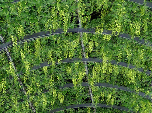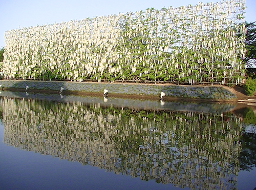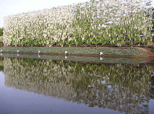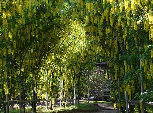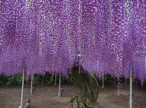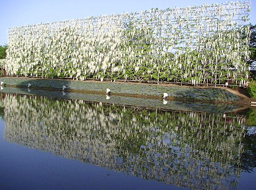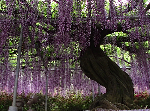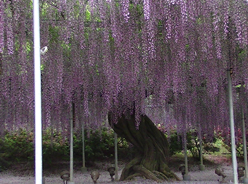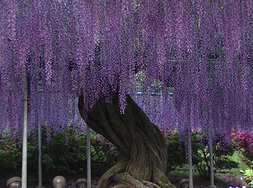 園内に250トンを超える炭を敷き詰めて植物をはじめ、すべての生命体の活力を高めています。 この大藤はまさにパワースポット!今年もたわわに花房をつけ、その生命力を発散しています。