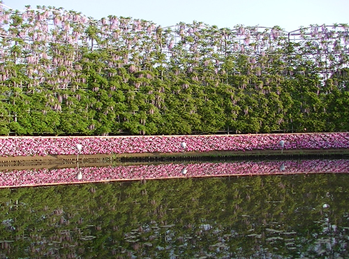 現在の園内は、大藤、白藤のトンネル内は満開が続いております。