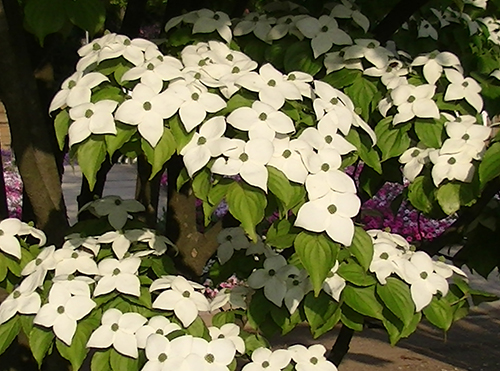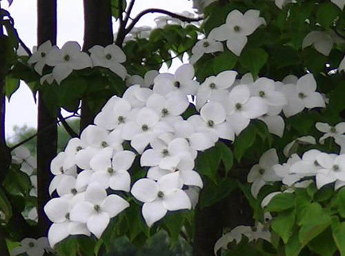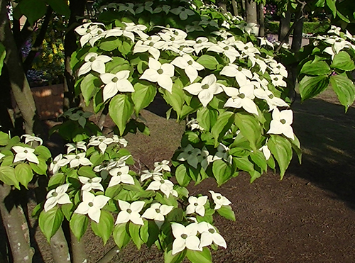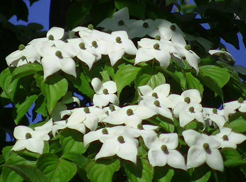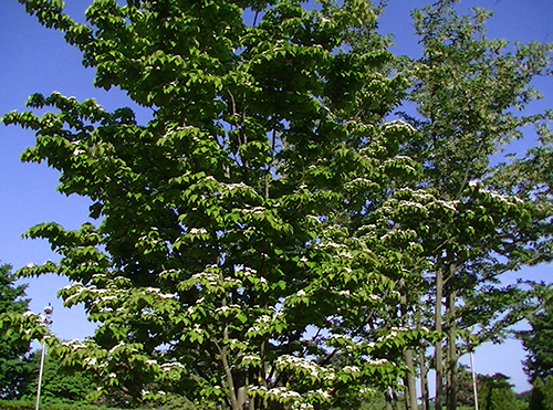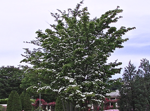 ミズキ科ミズキ属で白い花びらの様な部分を頭巾を破った法師に見立てて「山法師」と名付けられたそうです。秋に赤くなる果実は食用となり、樹形も良く紅葉も美しい為、シンボルツリーに適しております。