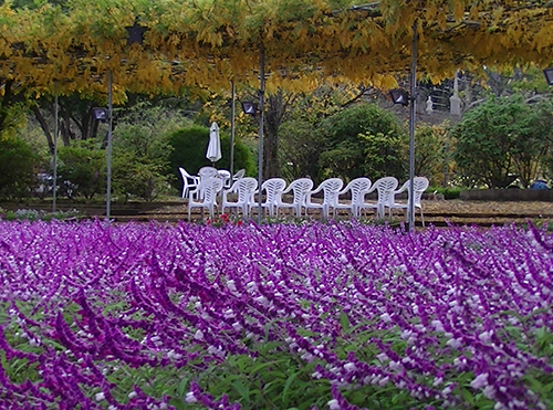 東日本最大級300万球のイルミネーションとアメジストセージと秋バラのコラボレーションです。