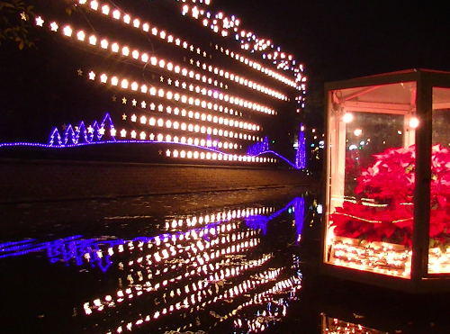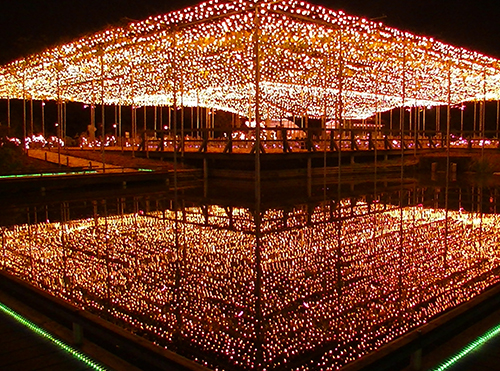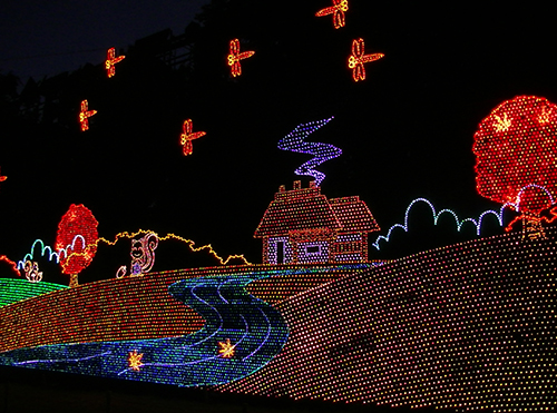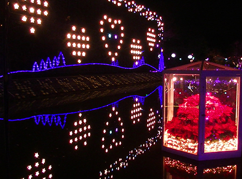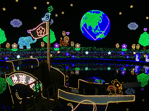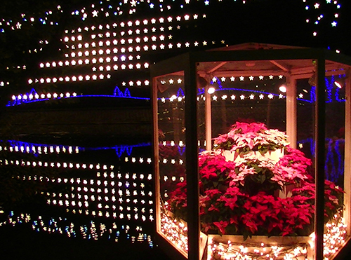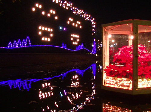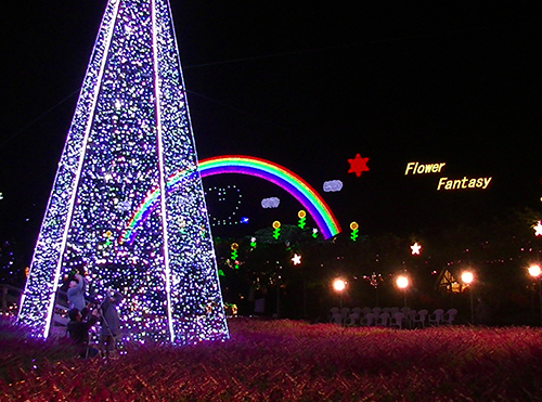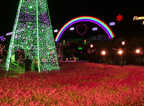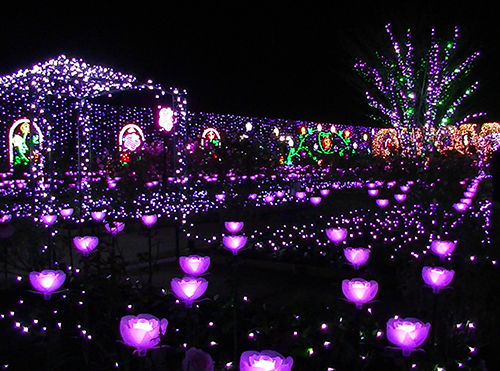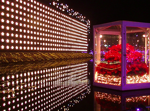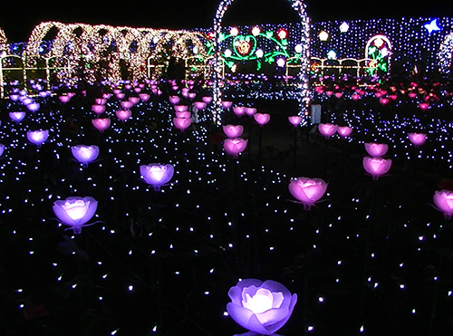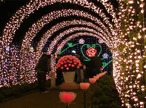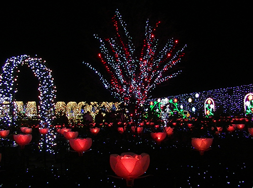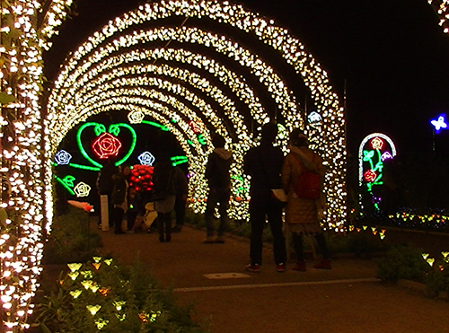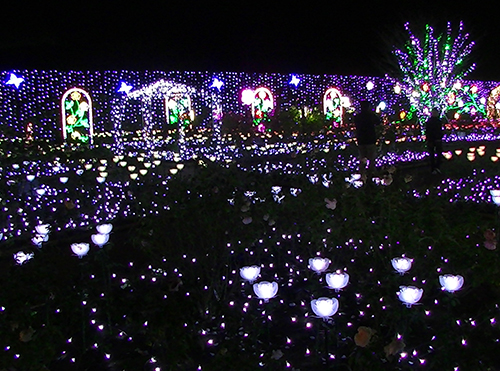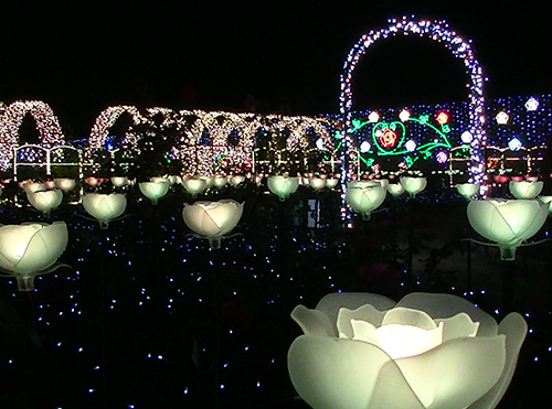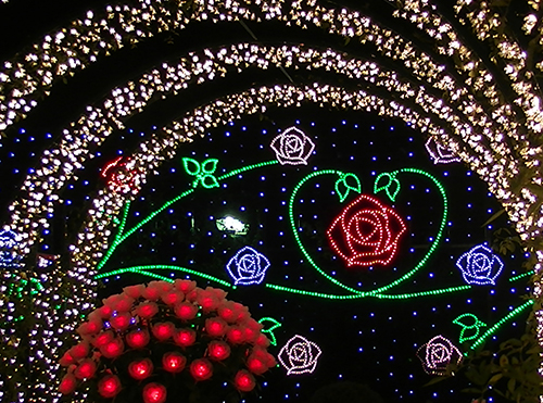 今年のイルミネーションは昨年より50万球増え、300万球となり、2014年春に新設したローズガーデンに光りのバラ園が登場しました!!
