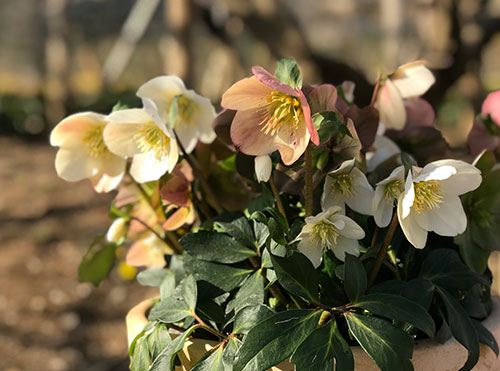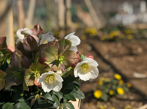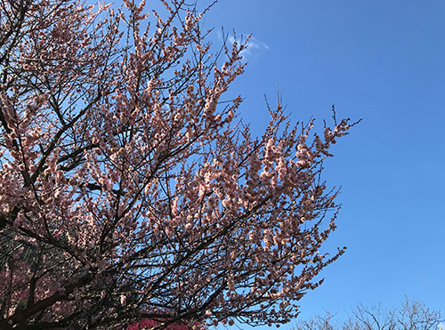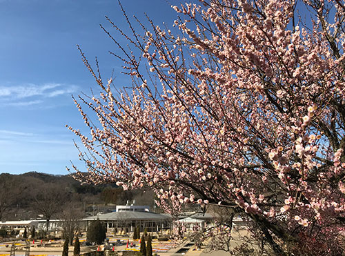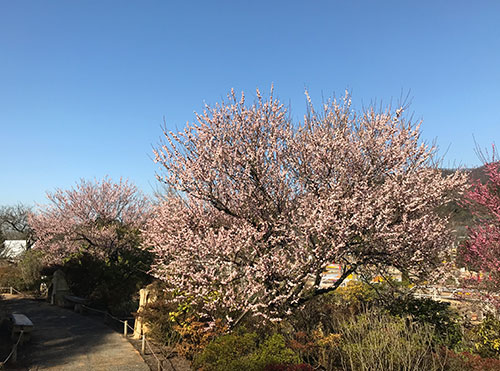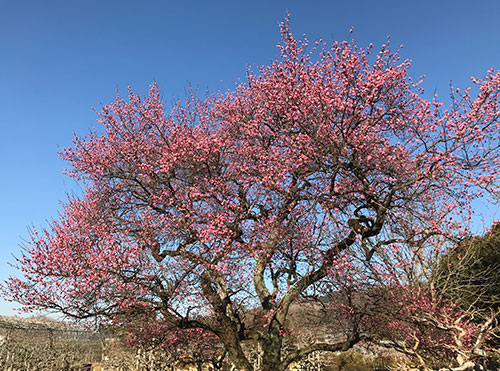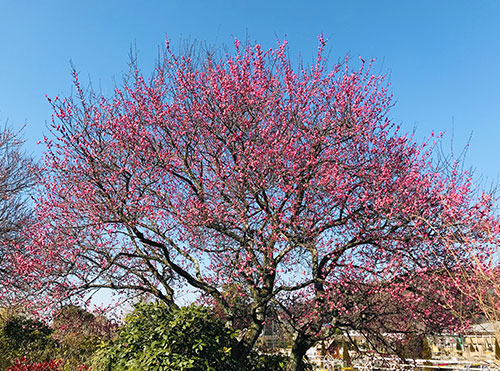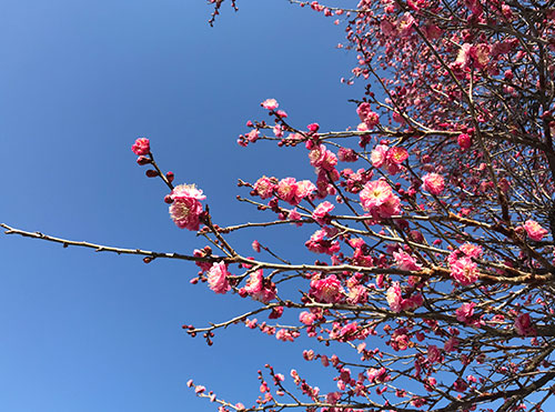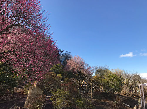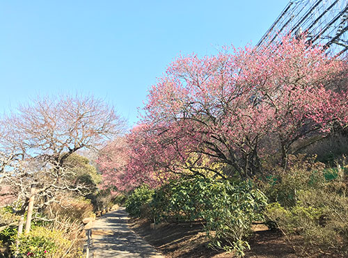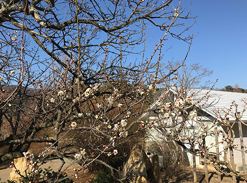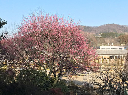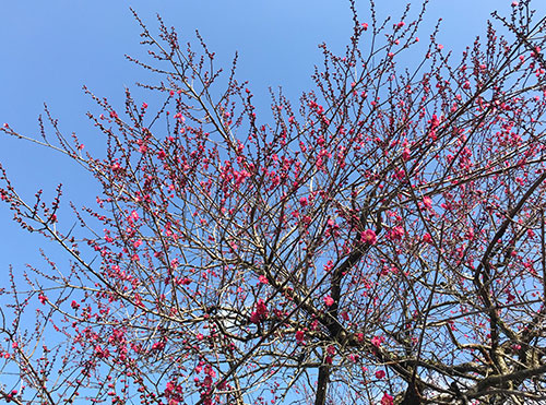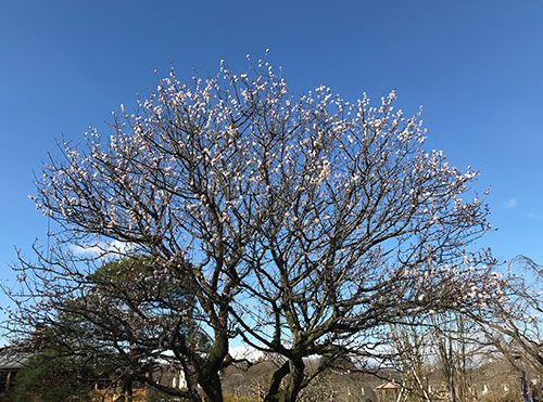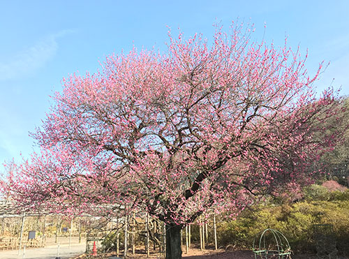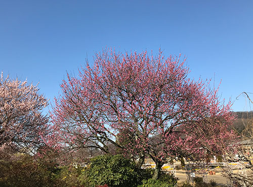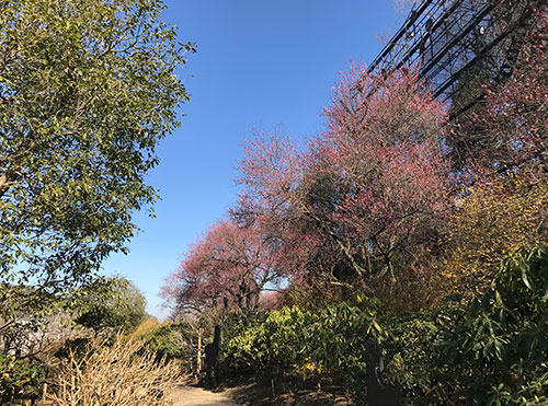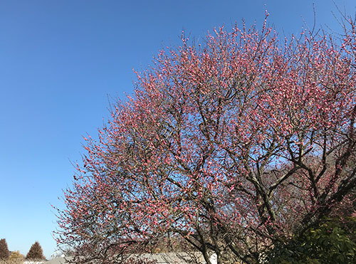 園内では、白梅、紅梅、寒紅梅、冬咲きボタンなどが大変きれいに咲いております。
