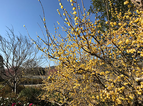 園内は冬咲き牡丹や、寒紅梅、ロウバイなどが大変きれいに咲いております。