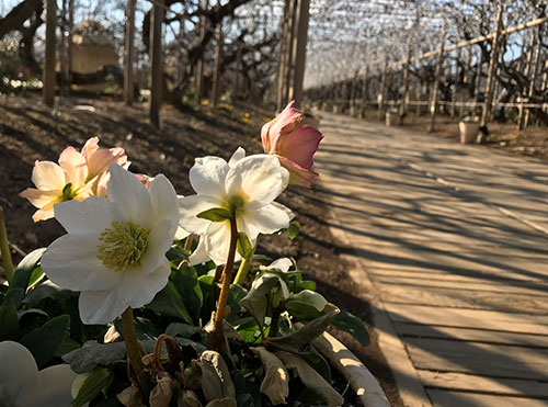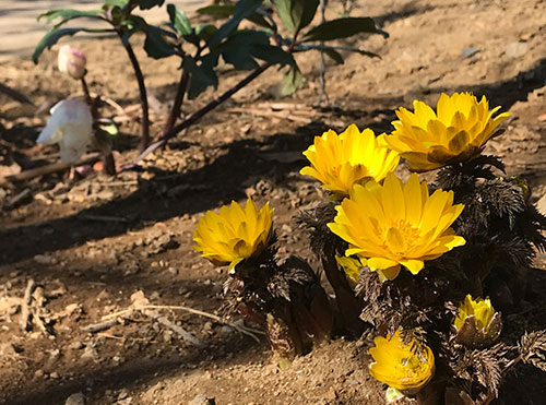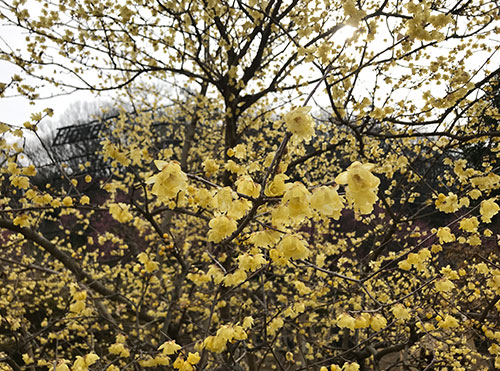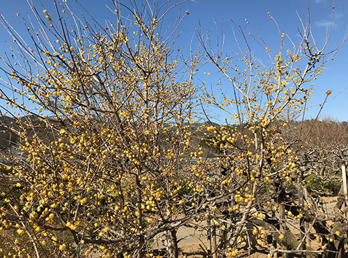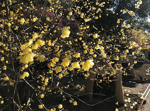 園内は冬咲き牡丹や、寒紅梅、ロウバイなどが大変きれいに咲いております。