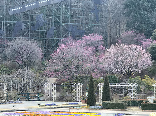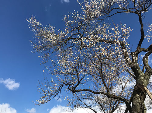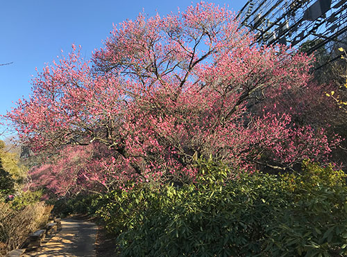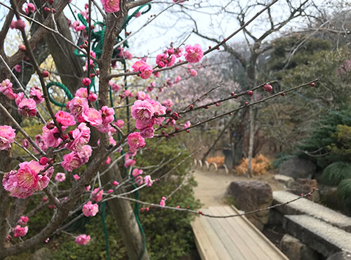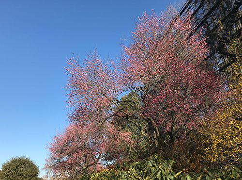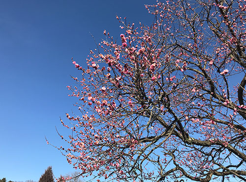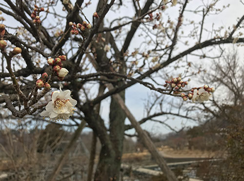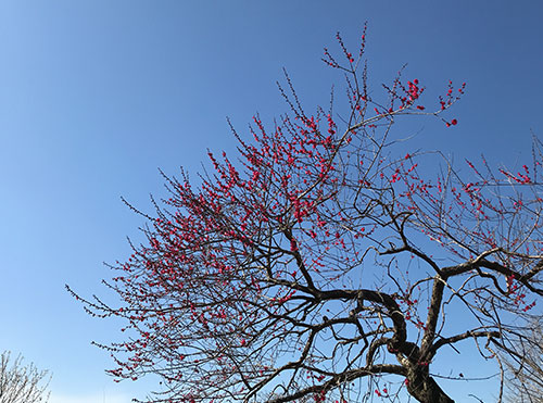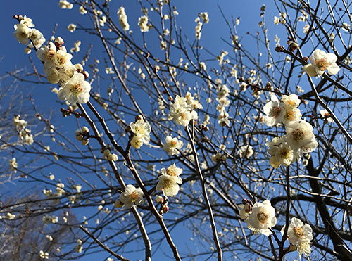 園内は白梅や、寒紅梅、ロウバイなどが大変きれいに咲いております。